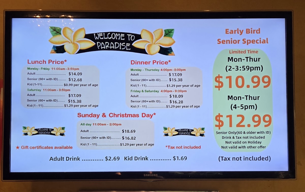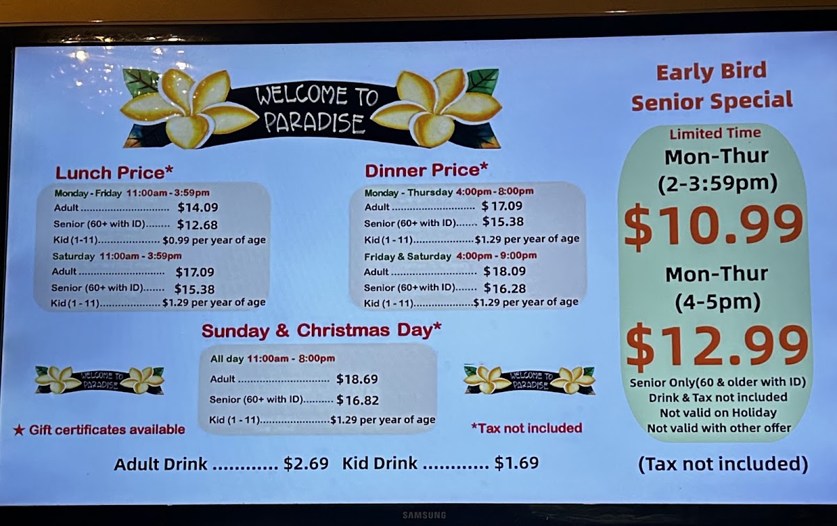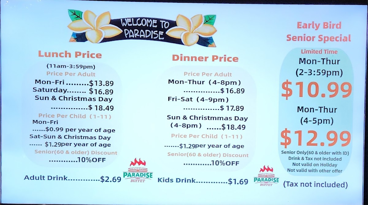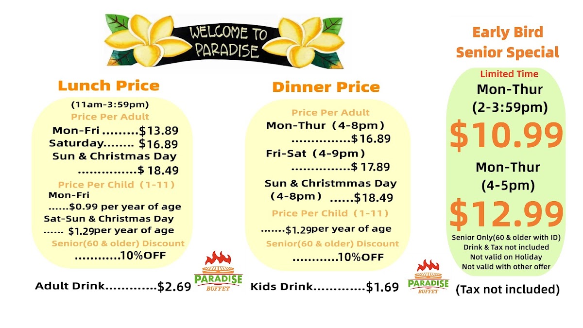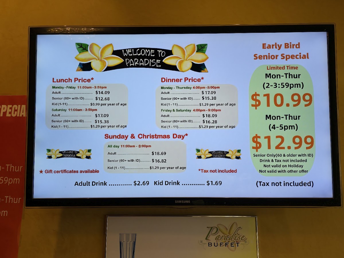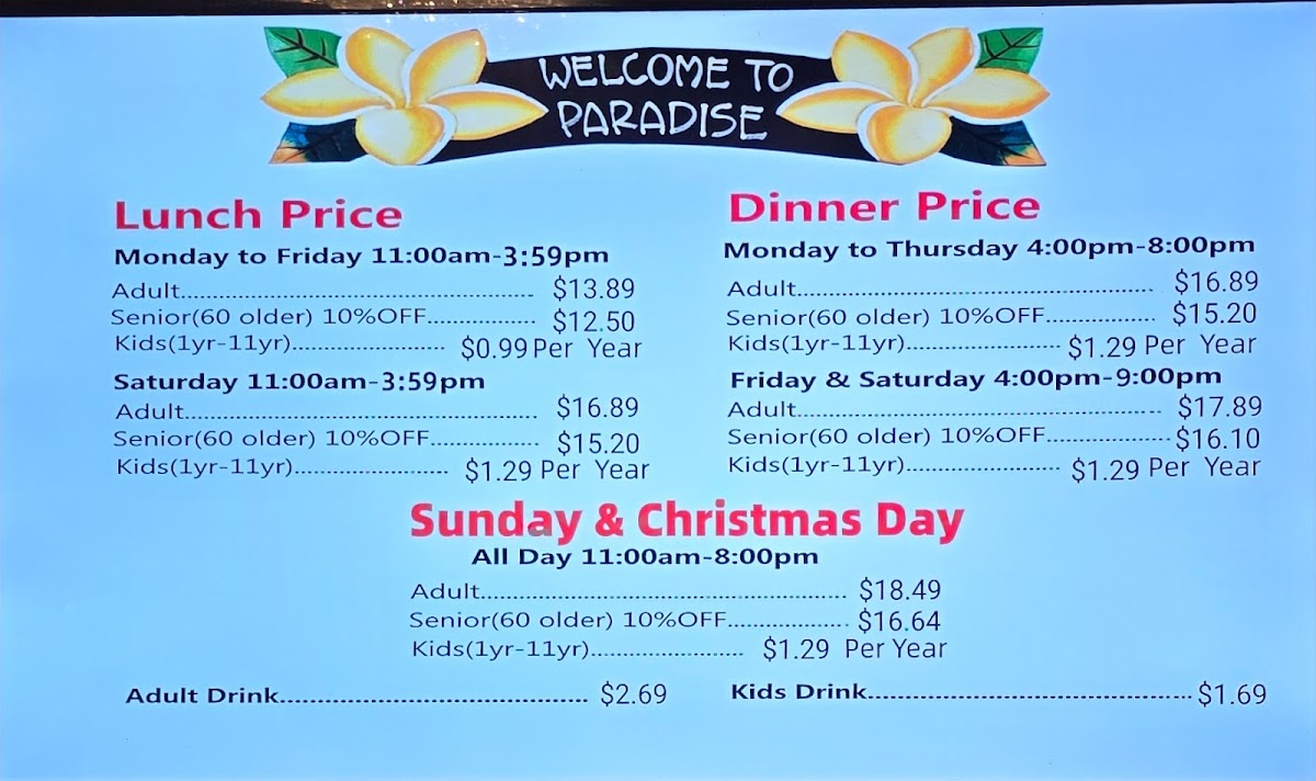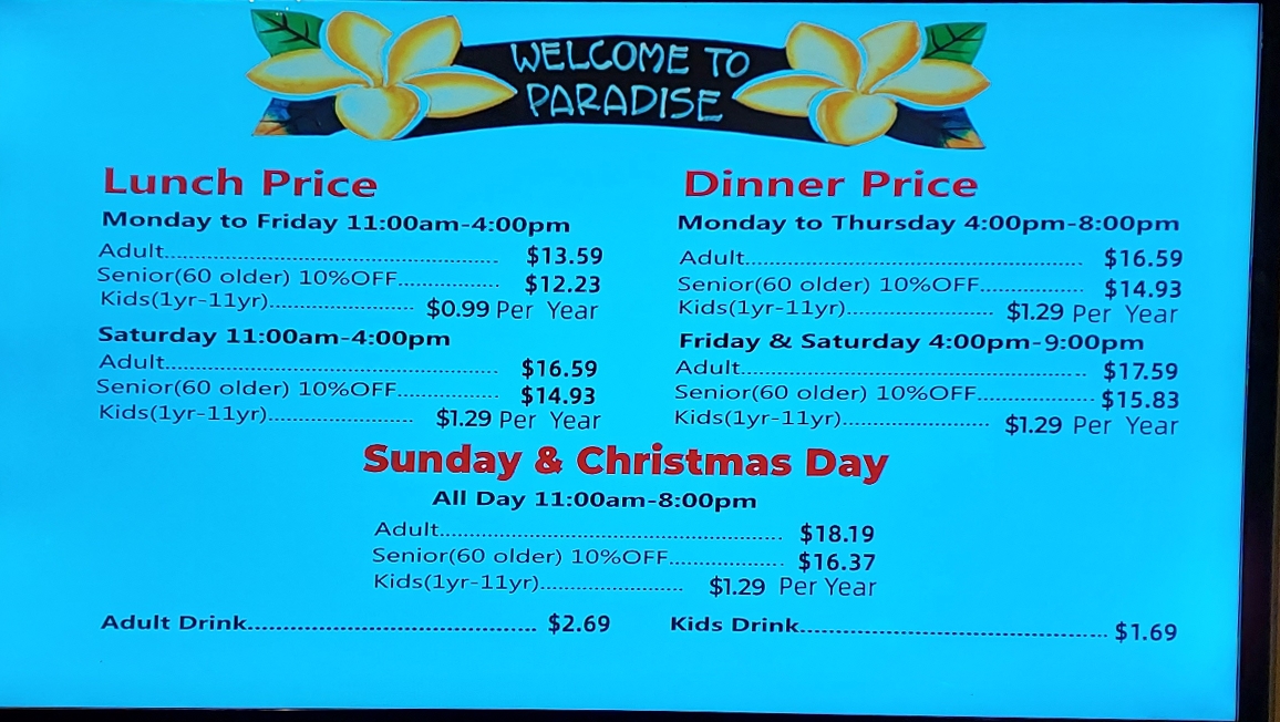 With lunch priced at just $10.99 (before 4 PM) and dinner at $12.99 (after 4 PM) from Monday to Thursday, the value is truly remarkable, especially for seniors. Diners frequently express delight over the consistent quality of food and service, making Paradise Buffet not just a meal but an experience to relish.